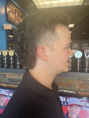Husband just returned and will not return. He told her he wanted it shorter in back, did not proceed to do it, instead collected his money. Told her to put the tip on the card and she doubled it. Unbe